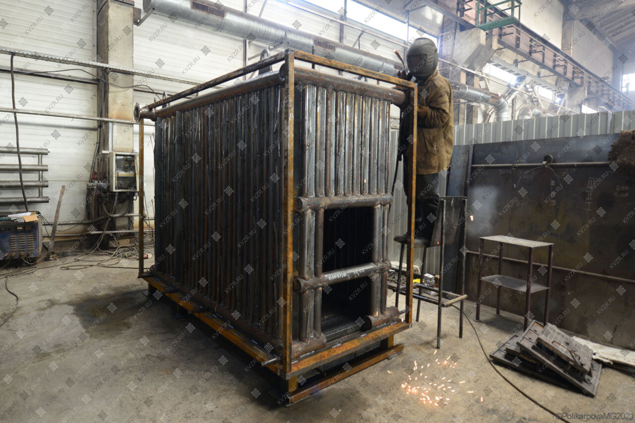 Все водогрейные котлы 1 0 МВт нашего производства - стальные, горизонтальные, водотрубные, прямоточные и компактные. Трубная часть котельного блока выполняется из труб различных диаметров, материал труб сталь 10 и 20. Блок снаружи обваривается стальной охлаждаемой полосой, поэтому в наших котлах исключена возможность задымления котельного зала. Снаружи на каркас из профильной трубы и швеллера крепится утеплитель и декоративная обшивка из полимерного листа. В обшивке предусмотрены лючки для очистки поверхностей нагрева.