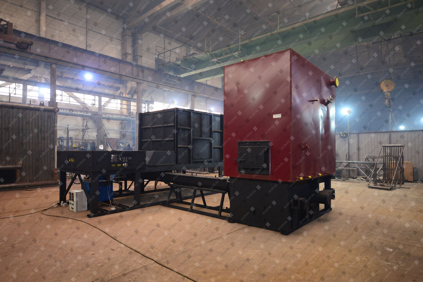 В конструкции опорной рамы, в нижней ее части, перед разгрузочным окном, предусматривается место под установку приемной секции транспортера конвейера для отведения выгружаемых опилок и щепы в топку автоматического котла.